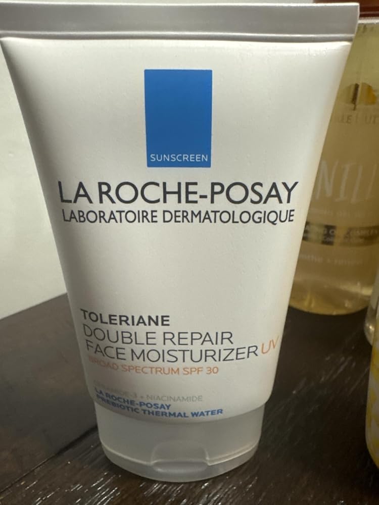 - Toleriane Double Repair Face Moisturizer UV is formulated with a high concentration of La Roche-Posay prebiotic thermal water, ceramide-3, niacinamide, and glycerin, providing up to 48hr hydration and restoring skin's natural protective barrier
